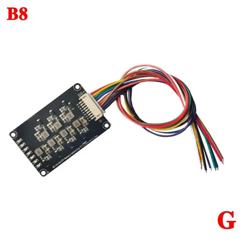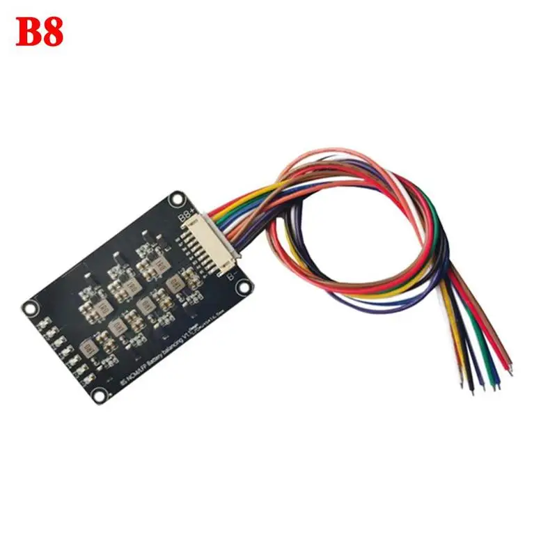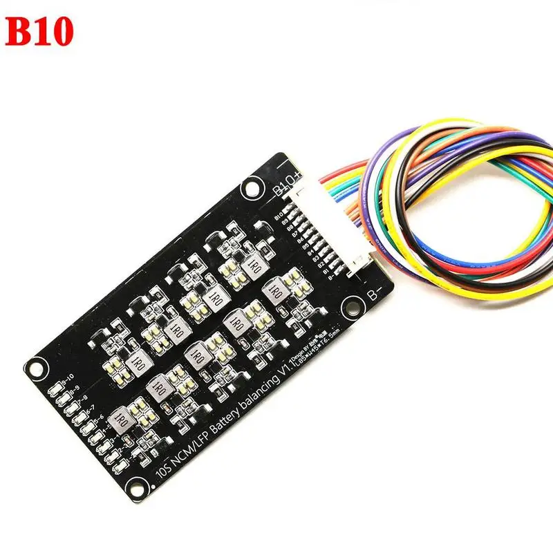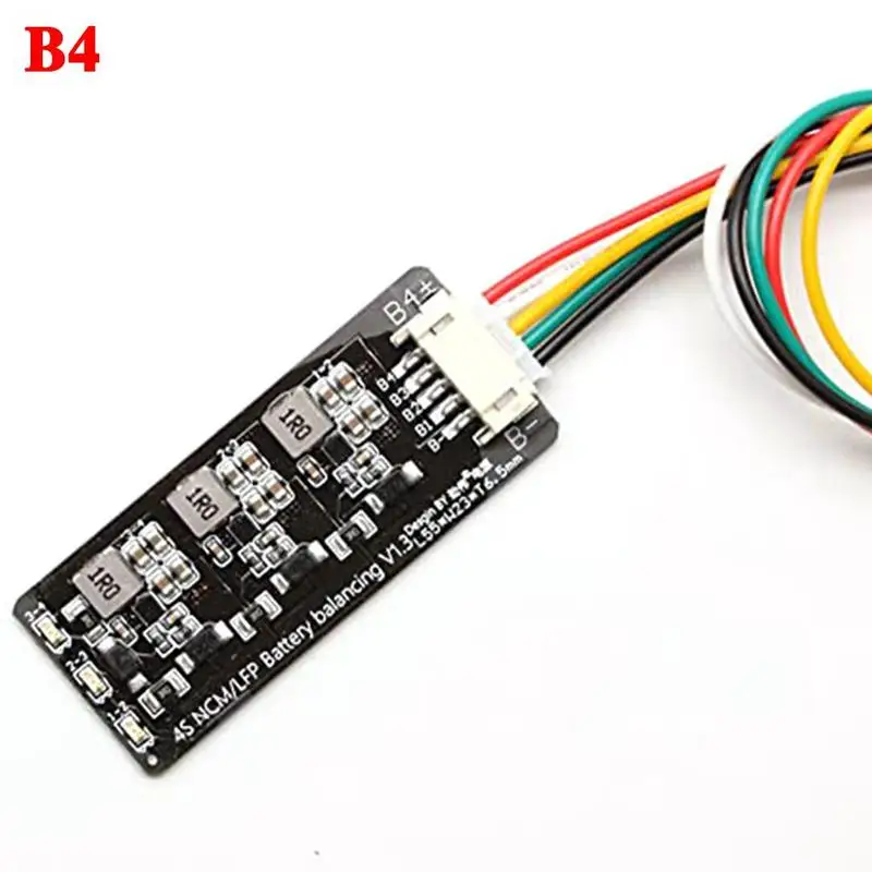 Инструкции по балансировке:1. Когда светильник выравнивания включен, работа по выравниванию включена,2. Светильник выравнивания выключается, и схема выравнивания спит,3. Светильник выравнивания мигает, струна выпадает, или цепь неисправна. Принцип равновесия:В этом модуле находится рядом с разности давлений выравнивания, прилегающий напряжение батареи разница достигает более 0,1 V, чип запускает выравнивания работы, до тех пор, пока прилегающие напряжение батареи разница находится в пределах 0,03 V, И прилегающая разница напряжения существует, когда аккумулятор заряжается и разряжается. При срабатывании выравнивания ошибка напряжения аккумуляторной батареи также будет возвращена к более идеальному значению, уменьшая затраты на техническое обслуживание батареи. Технические параметры:Рабочее напряжение 2,0 V-4,5 V, трехкомпонентная литиевая батарея универсальна, LTO литиевая батарея, не является приемлемым.Баланс тока:Прилегающий напряжение разница выше 0,1 V (ток составляет около 0,5-0.7A);Прилегающий напряжение разница заключается в более, чем 0,2 V (достичь максимальной выравнивания ток 1.2A);Чем меньше разница в давлении, тем меньше равный ток. Определение проводки:B-, полный отрицательный полюс аккумуляторной батареи (отрицательный полюс первой батареи)В1, положительная клемма первого аккумулятораВ2, положительная клемма второго аккумулятораВ3. И так далее. Аксессуары:1 * эквалайзер