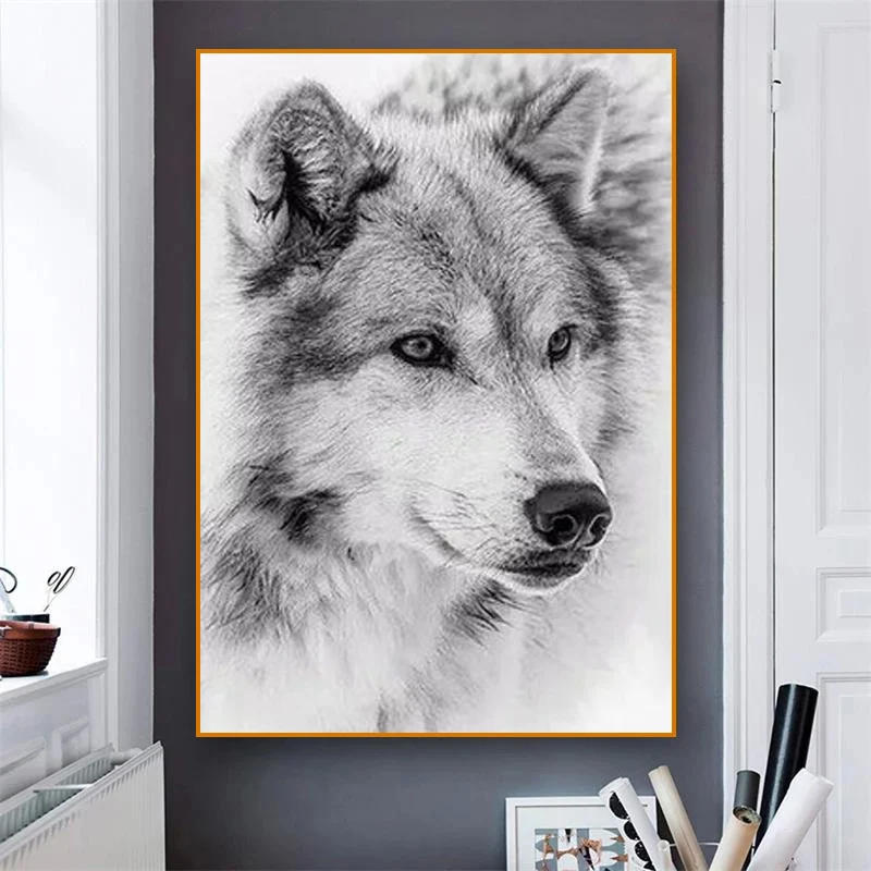 Черно-белый плакат в современном минималистском стиле, крутой волк,...