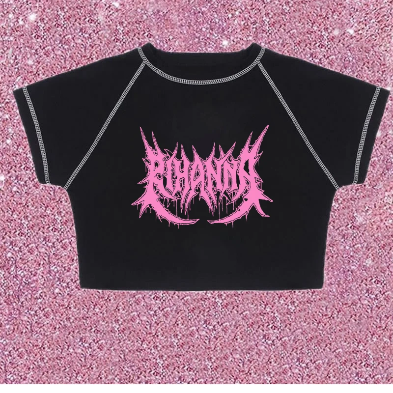Укороченные топы с буквенным принтом E-girl, черные готические футб...