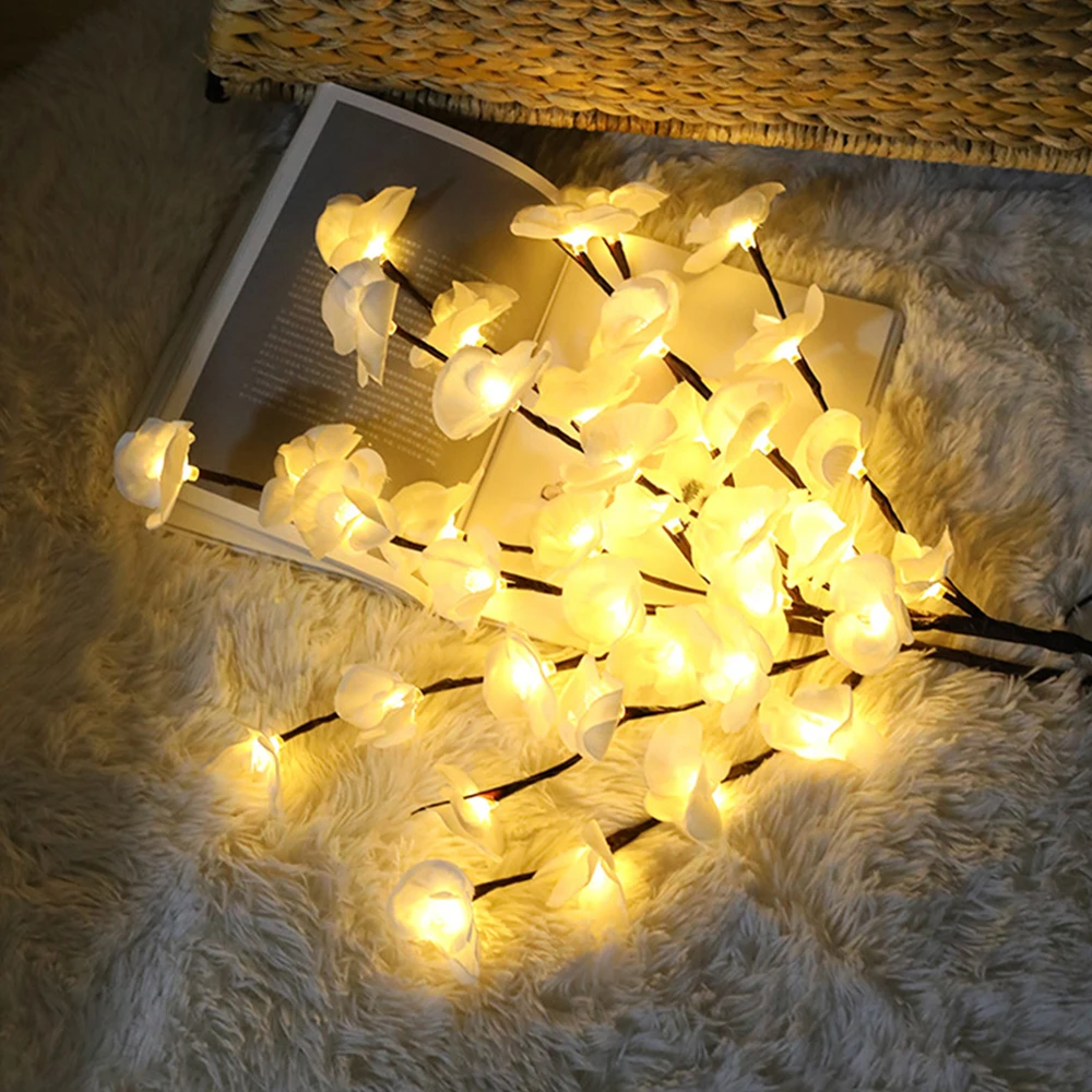 Ветка орхидеи, 73 см, 20 светодиодов, гирлянда из искусственных цветов, для свадьбы, Рождества, новогодней вечеринки, ваза, настольное украшение