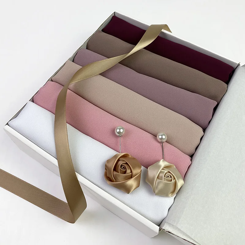 Изготовленный На Заказ Хиджаб Платки пузырь шифон хиджаб для мусульманок шарф подарок Коробки шаль Обёрточная бумага добротная однотонная Цвета платки Femme шаль