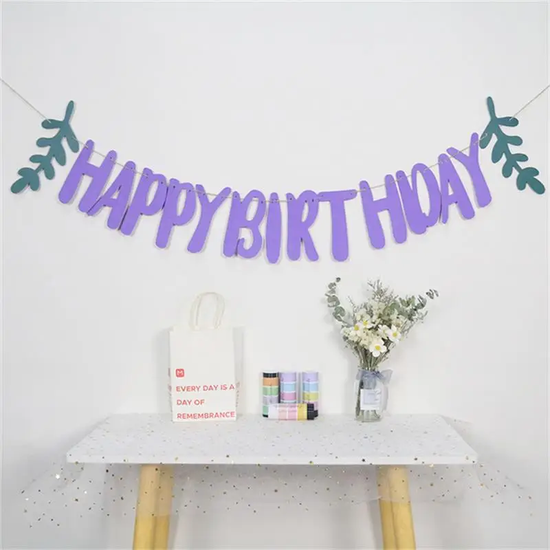 Баннер с днем рождения, алфавитный баннер в виде листьев, гирлянды из флажков, украшение для вечеринки в честь Дня Рождения, украшение для детского праздника