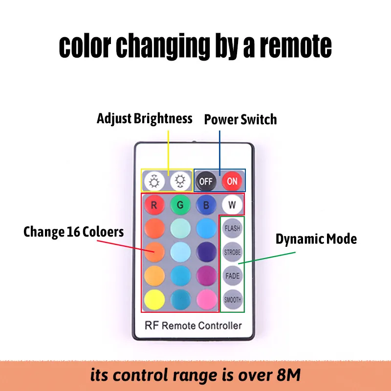 10. Принять светодиодный контроллер RF, который имеет 24 кнопки, функция каждой кнопки как таблица ниже:
