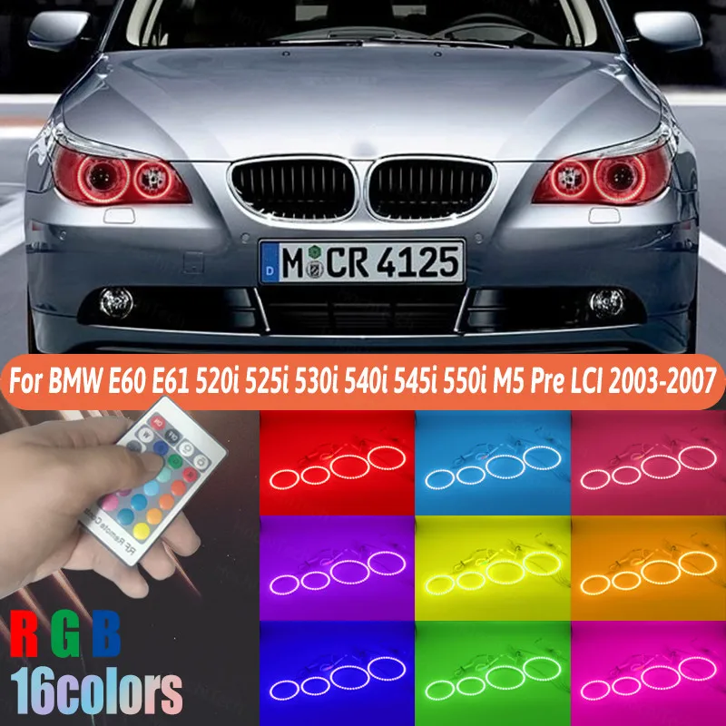 Мульти-Цвет ультра яркая цветная (RGB) комплект светодиодов глаза ангела для BMW E60 E61 520i 525i 530i 540i 545i 550i M5 предварительно LCI 2003-07 с радиочастотным пультом дистанционного управления