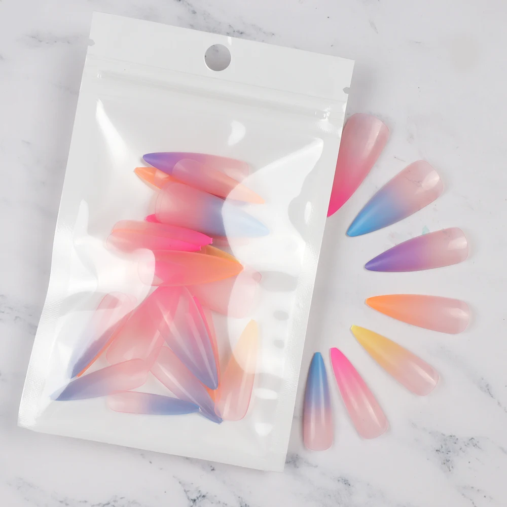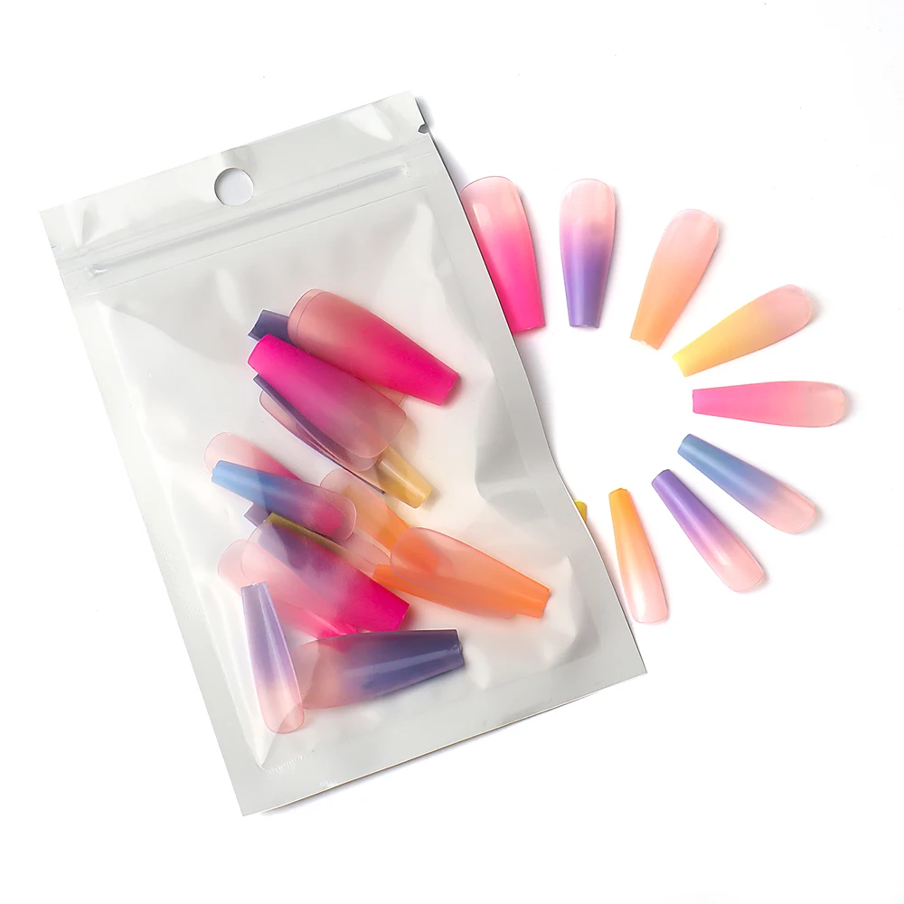 Радужные накладные ногти балерина Омбре, длинный гроб, глянцевые накладные ногти, накладные ногти, 20 шт.упаковка