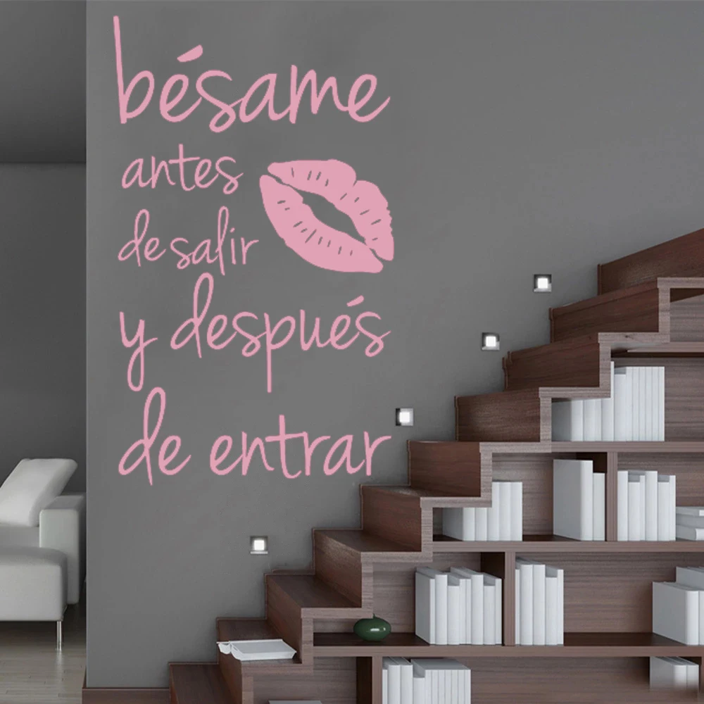 Испанские настенные наклейки, Декор, поцелуй меня перед уходом и после входа в цитату, виниловые Съемные дверные наклейки, украшение для дома HY1975