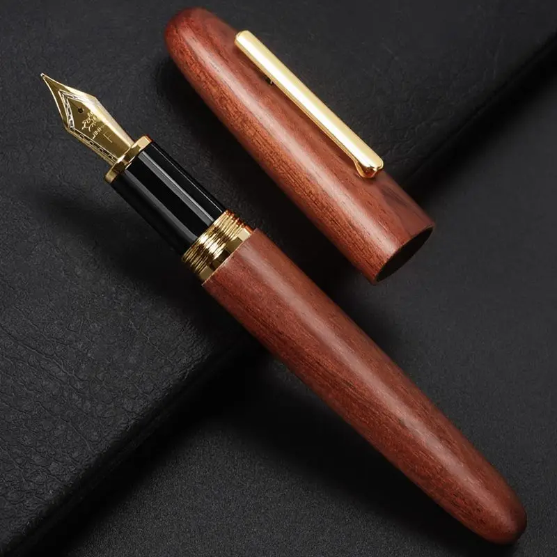 Ручка перьевая Jinhao 9056 из натурального дерева, деревянная ручка с изогнутым наконечником и чернилами для каллиграфии, модный подарок