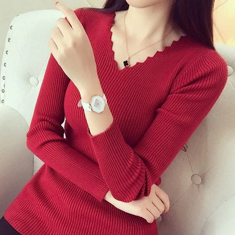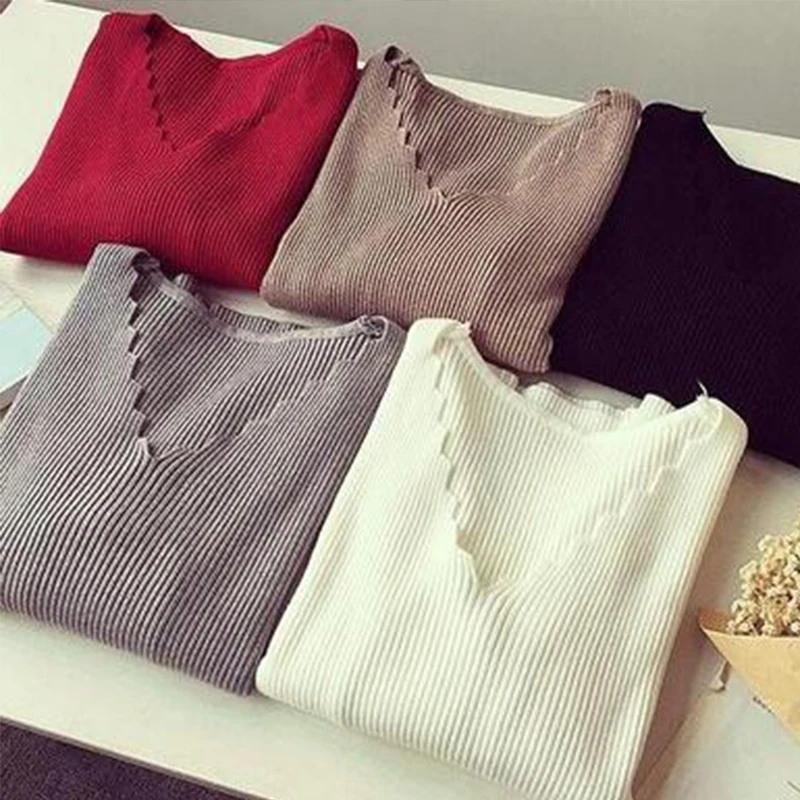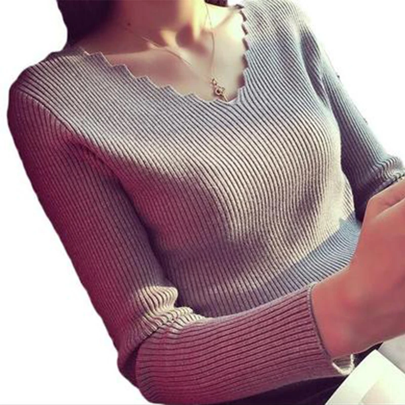 Свитер женский трикотажный, с V-образным вырезом и длинным рукавом