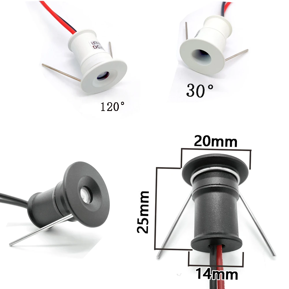 Миниатюрный Светодиодный точечный светильник, приглушаемый потолосветильник светильник для шкафа, черный, белый, серебристый корпус, IP65, лампа для лестницы, 12 В постоянного тока, 1 Вт