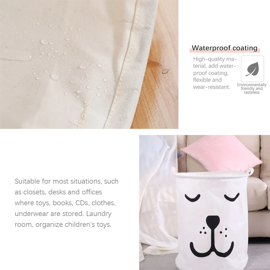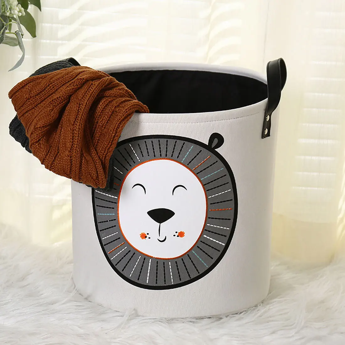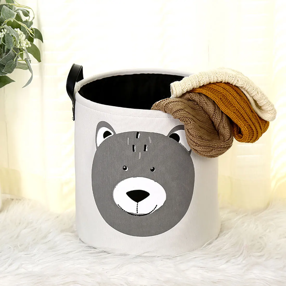 Спецификация: 100% новый и высококачественный Материал: хлопок, лен + полиэтиленовое покрытие Размер: 01-03: 40*50 см Лев, медведь: 35*35 см Вес: 40 г Посылка входит: 1 х корзина для хранения