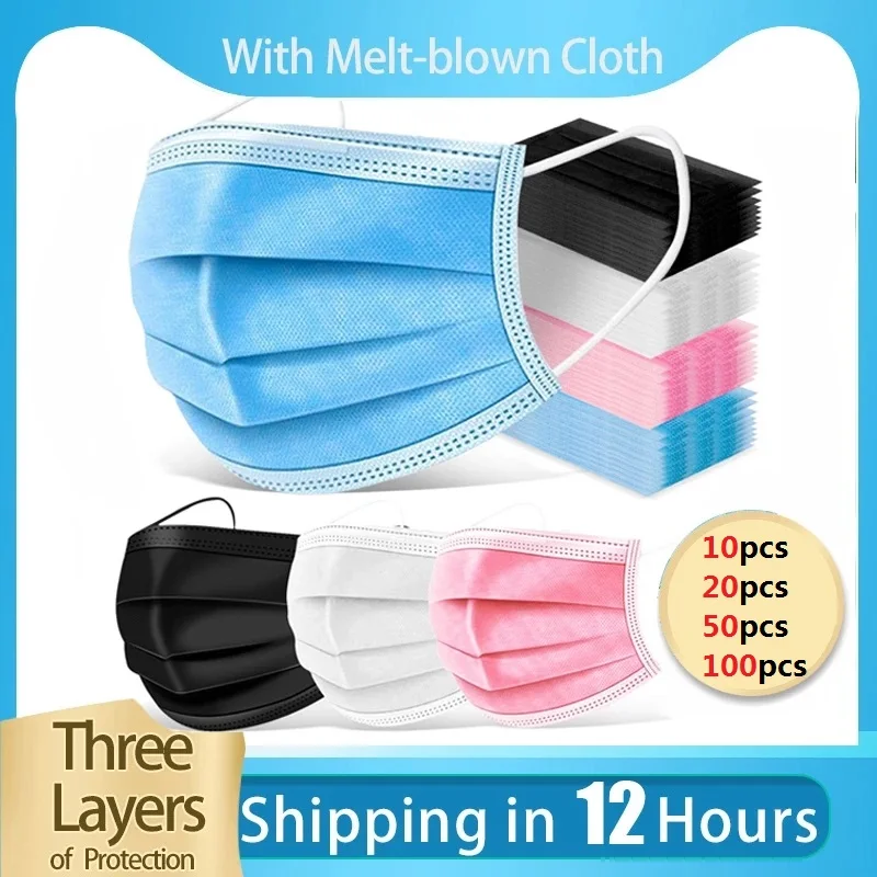 50100200 шт одноразовые защитные маски 3 Слои Non-ткали Анти-пыль туман Mascarilla дышащая сварочная маски Быстрая доставка