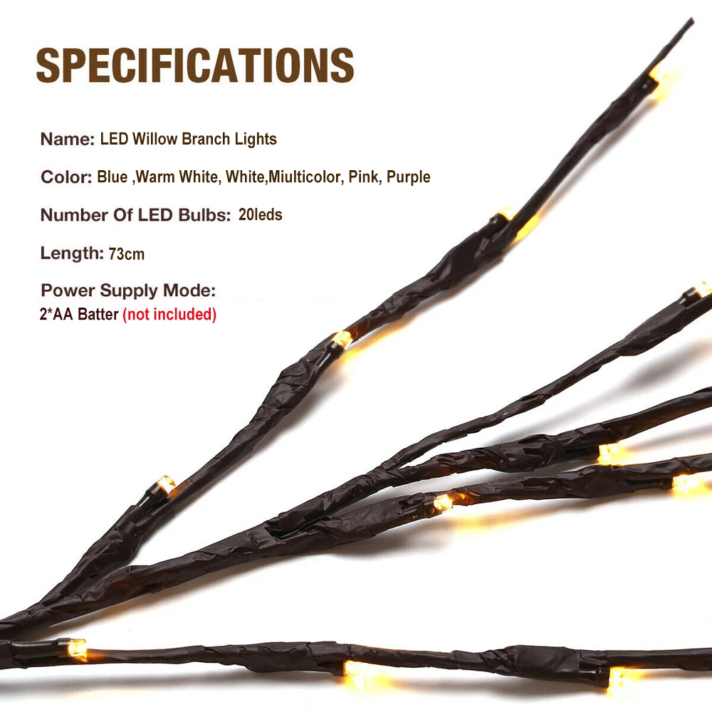Гирлянда с ветками орхидеи, розоваябелая искусственная ветка дерева, 73 см, 20 светодиодов, светильник свадьбы, Рождества, дома, вечеринки, украшения для спальни