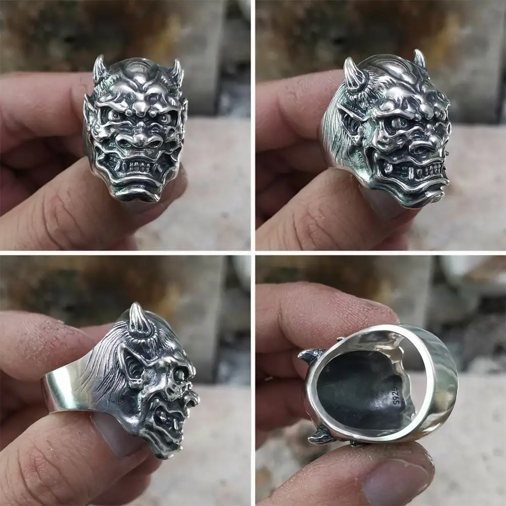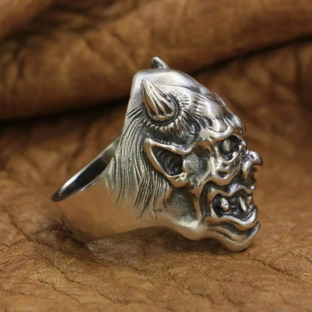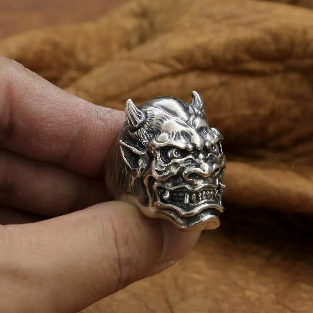 Кольцо мужское из серебра 925 пробы с японским призраком и черепом дьявола TA253, размер США 7 15
