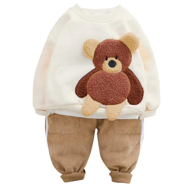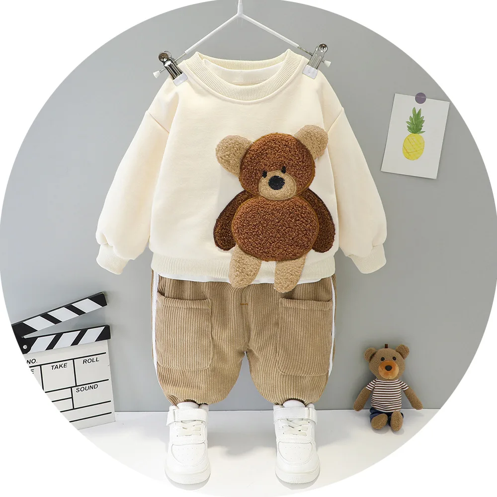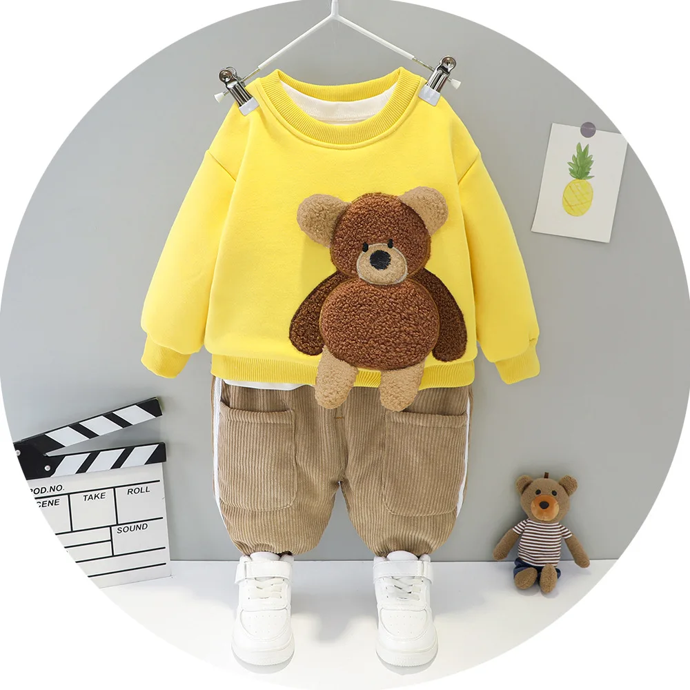 Новинка, зимняя одежда для младенцев, новорожденных, комплекты одежды для маленьких девочек и мальчиков, мультяшный медведь, детские плюшевые топы и штаны, детская одежда
