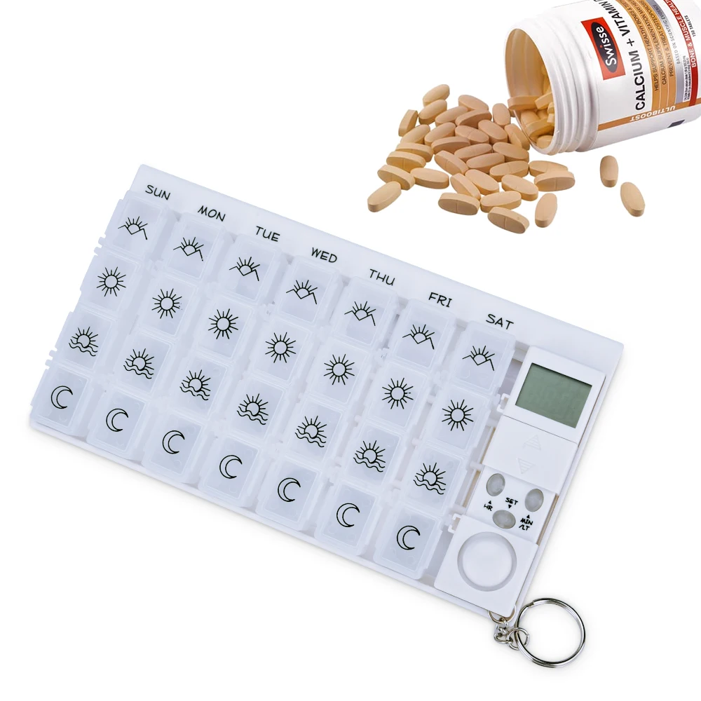 7 дней коробка для таблеток, органайзер для таблеток, светодиодный таймер, напоминание, 28 сеток, еженедельный диспенсер для таблеток, будильник