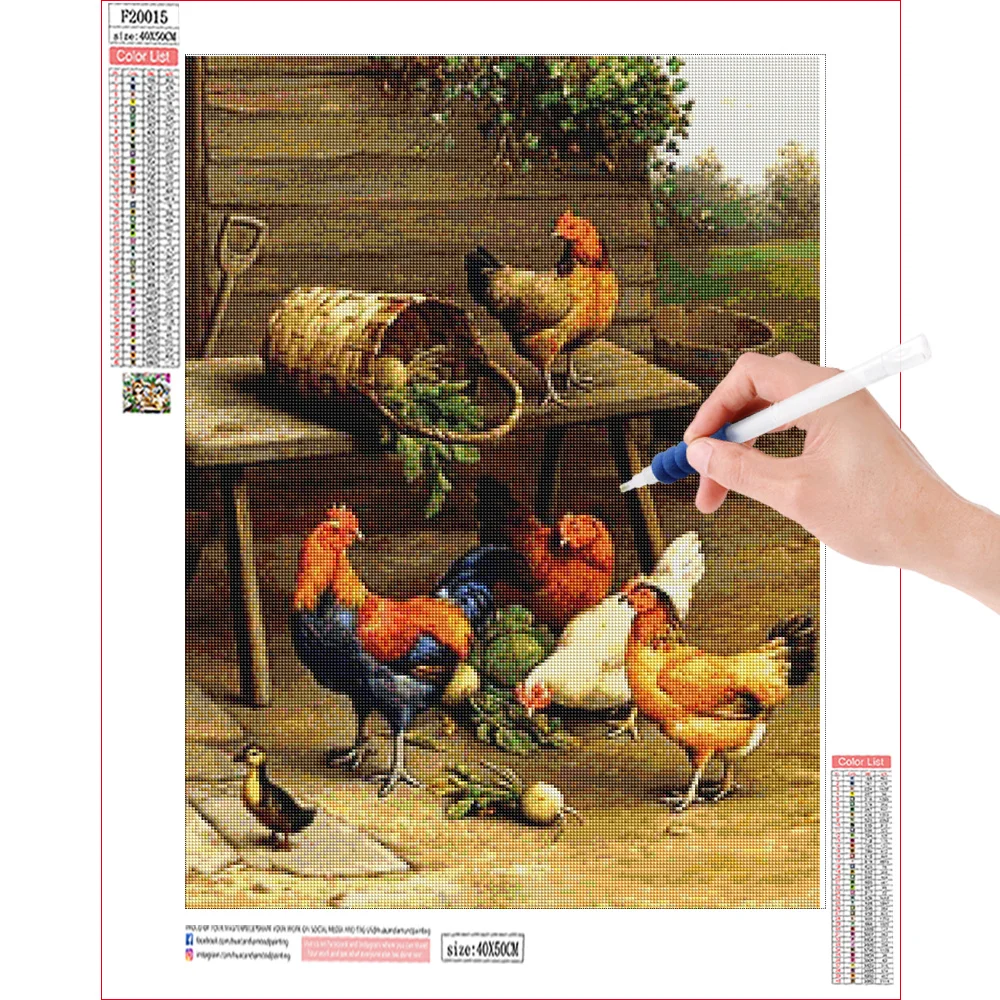HUACAN DIY Полная квадратная Алмазная картина животное курица Стразы изображения курица 5D мозаика, алмазная петух вышивка крестиком