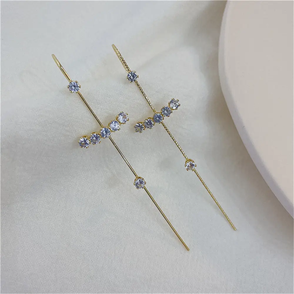 Женские серьги золотистого цвета с длинными крючками, серьги с крис...