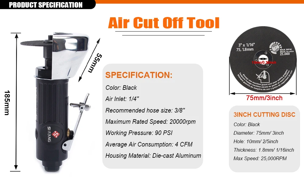 Пневматическая машина для резки металла, 20000 об.мин., 3-дюймовая шлифовальная машина, прямой пневматический резак, режущие инструменты для обработки металла