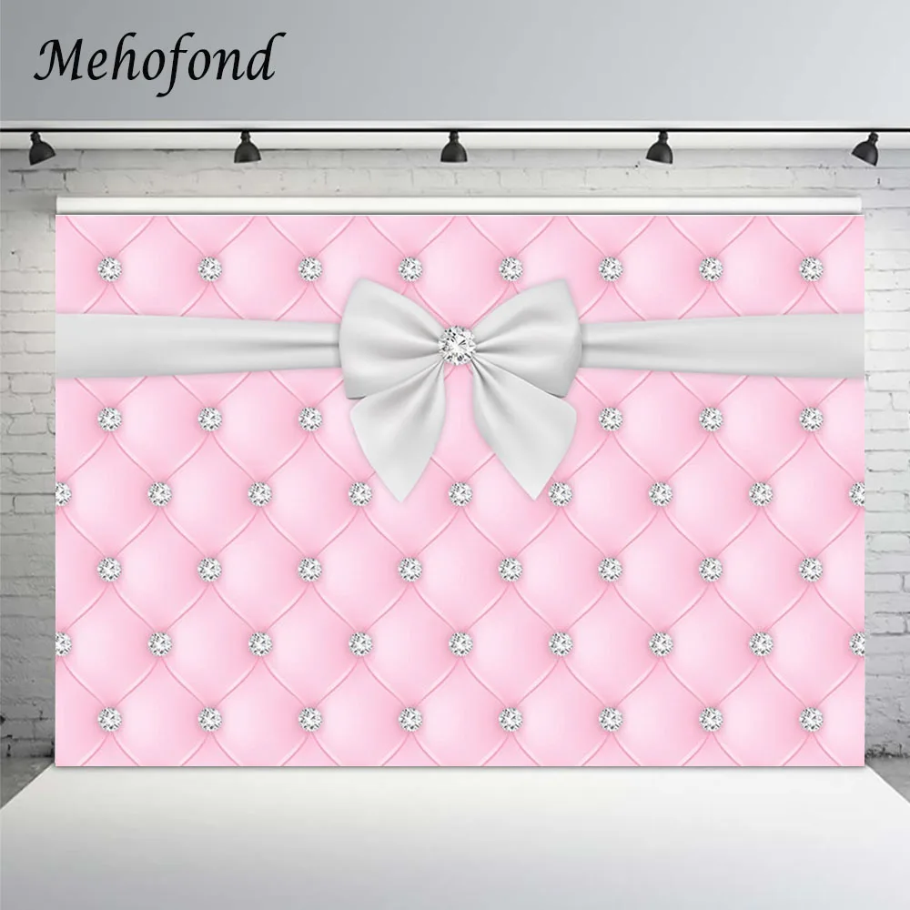 Mehofond розовый фон для кровати с изголовьем кровати текстура Блестящий бриллиантовый бант Детский День Рождения фотография Фон Фотостудия баннер