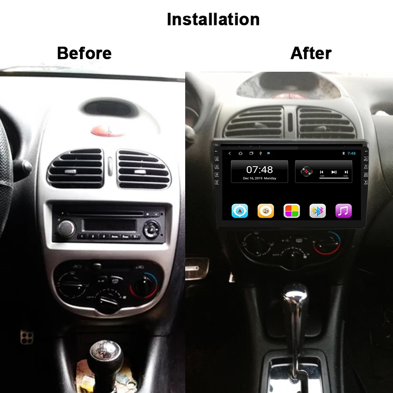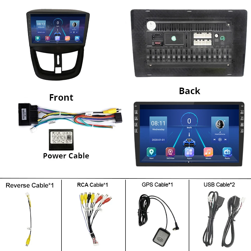 Автомагнитола 2DIN, Android 9,0, для Peugeot 207, 2006-2015, GPS-навигация, 4 + 64 ГБ, Bluetooth, DVD-плеер