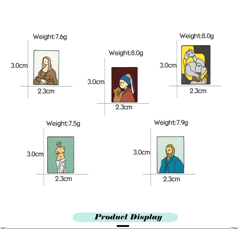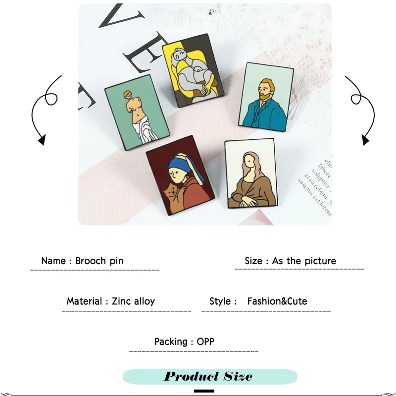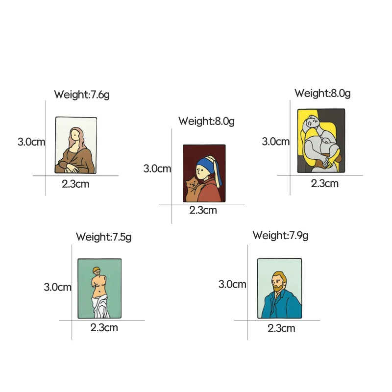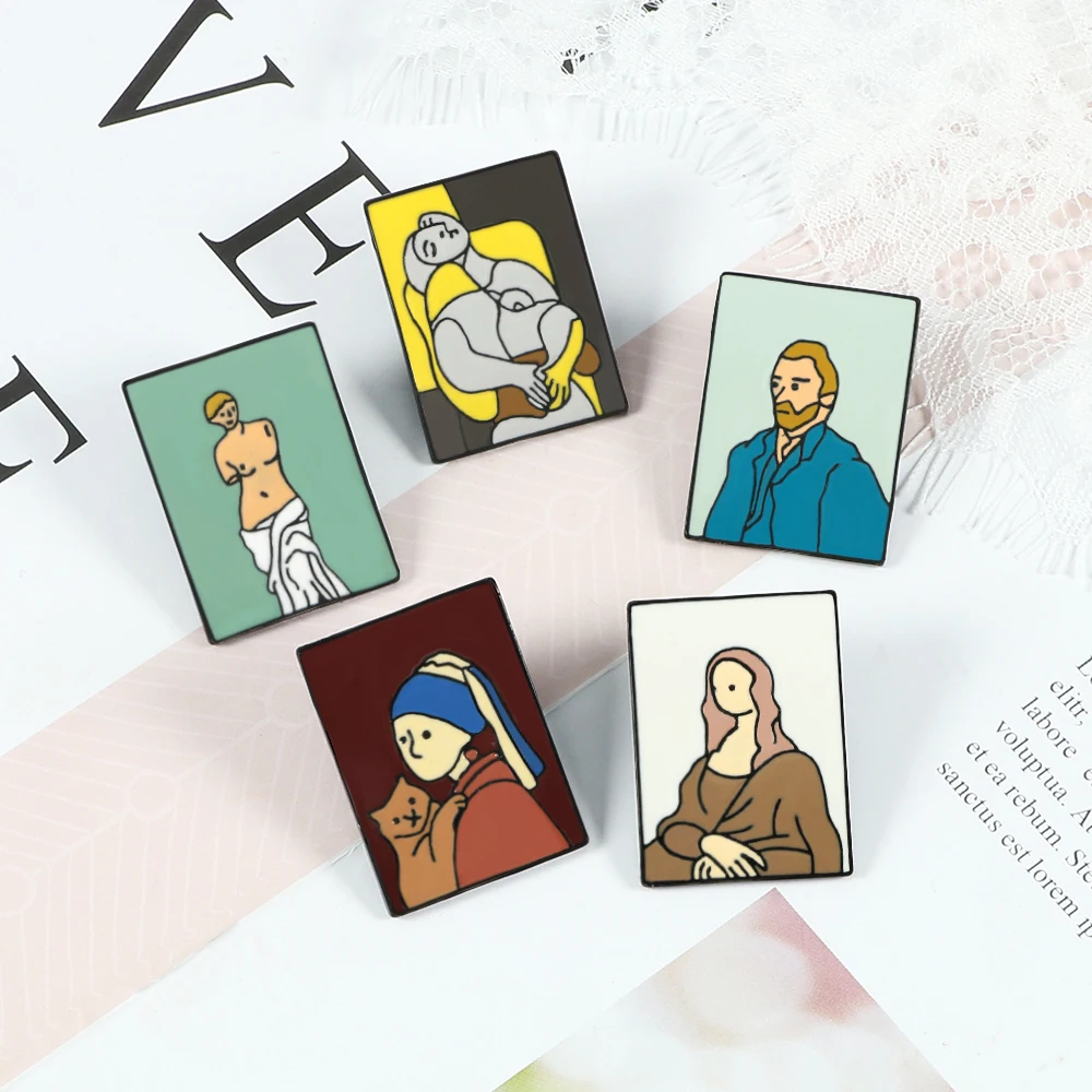Брошь на лацкан с эмалью, с изображением картины маслом Ван Гога Пикассо Моны Лизы Венеры