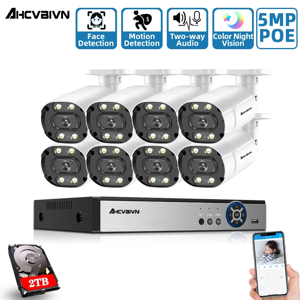 5MP распознавание лица POE IP камера система безопасности наборы 8CH SONY 335 аудио водонепроницаемый CCTV видео наблюдение AI NVR