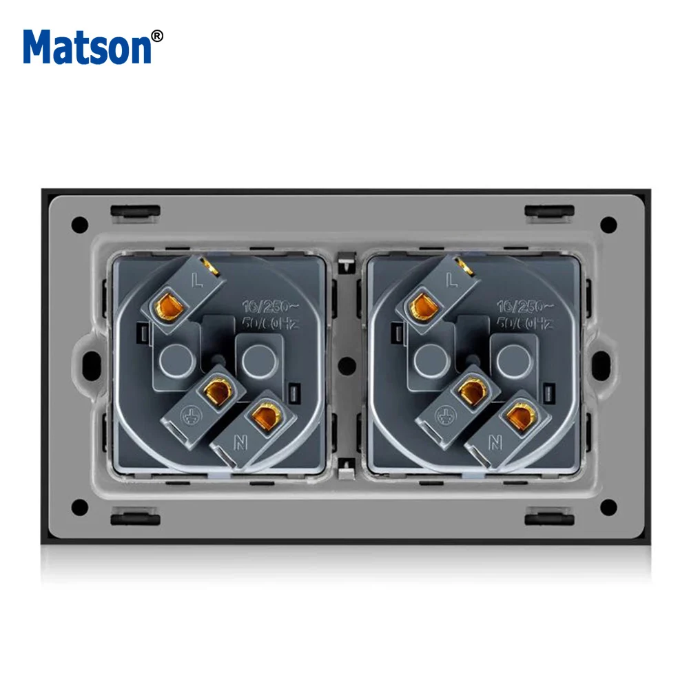 1. С 1 или двойным модулем ЕС2. Номинальное напряжение (ы): 100 ~ 250 В переменного тока/50 ~ 60 Гц3. Номинальный ток: 16A4. Обеспечение заземления: с заземлением5. Степень защиты от электрического удара: с повышенной защитой6. Тип клемм: встроенный тип винтов7. Размер: 146 мм x 86 мм8. Цвет: белый/черный/шампанское золото9. Материал панели: закаленное Хрустальное стекло/Огнестойкий Поликарбонат пластик10. Стандарт розетки: Европейский или немецкий стандарт Schuko