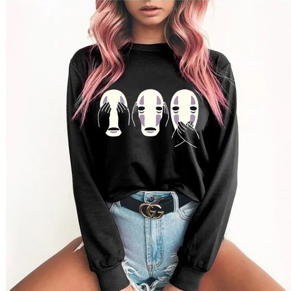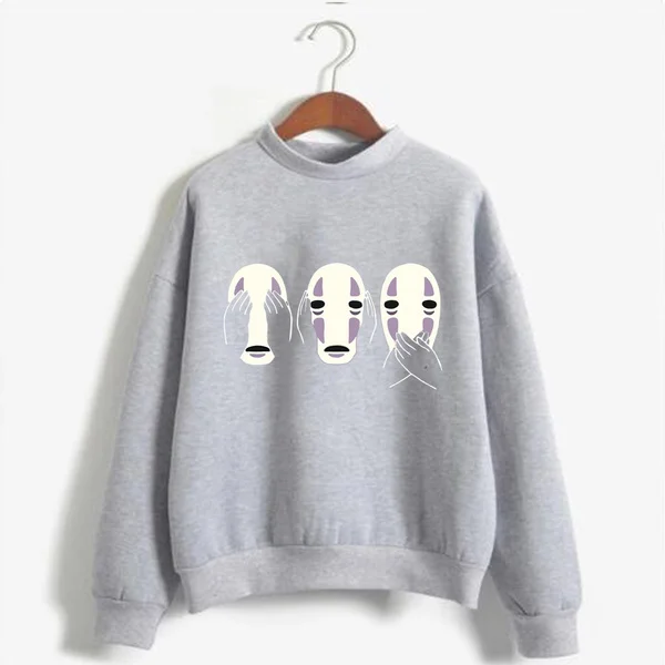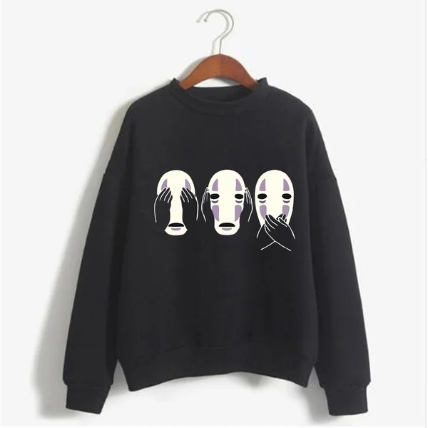 Свитшот женский аниме без лица, мультяшный пуловер аниме Миядзаки Хаяо из аниме без лица, черный топ с рисунком