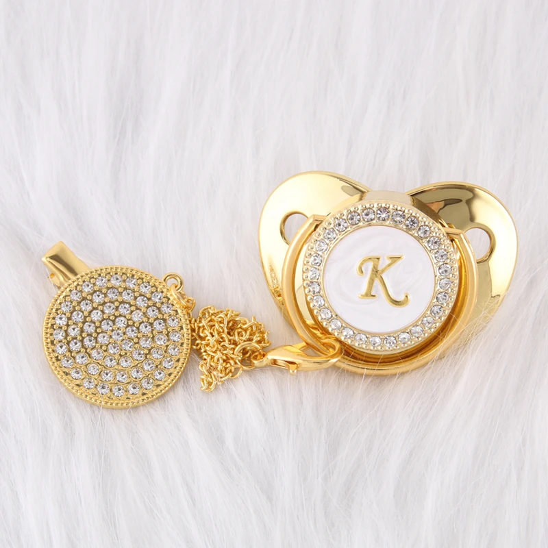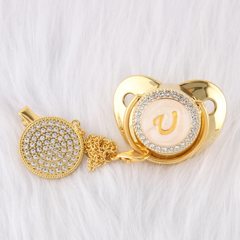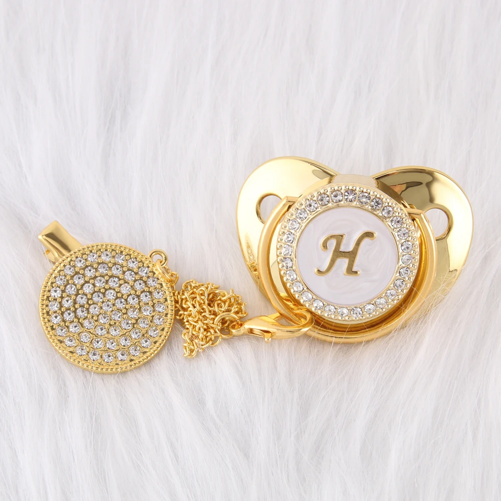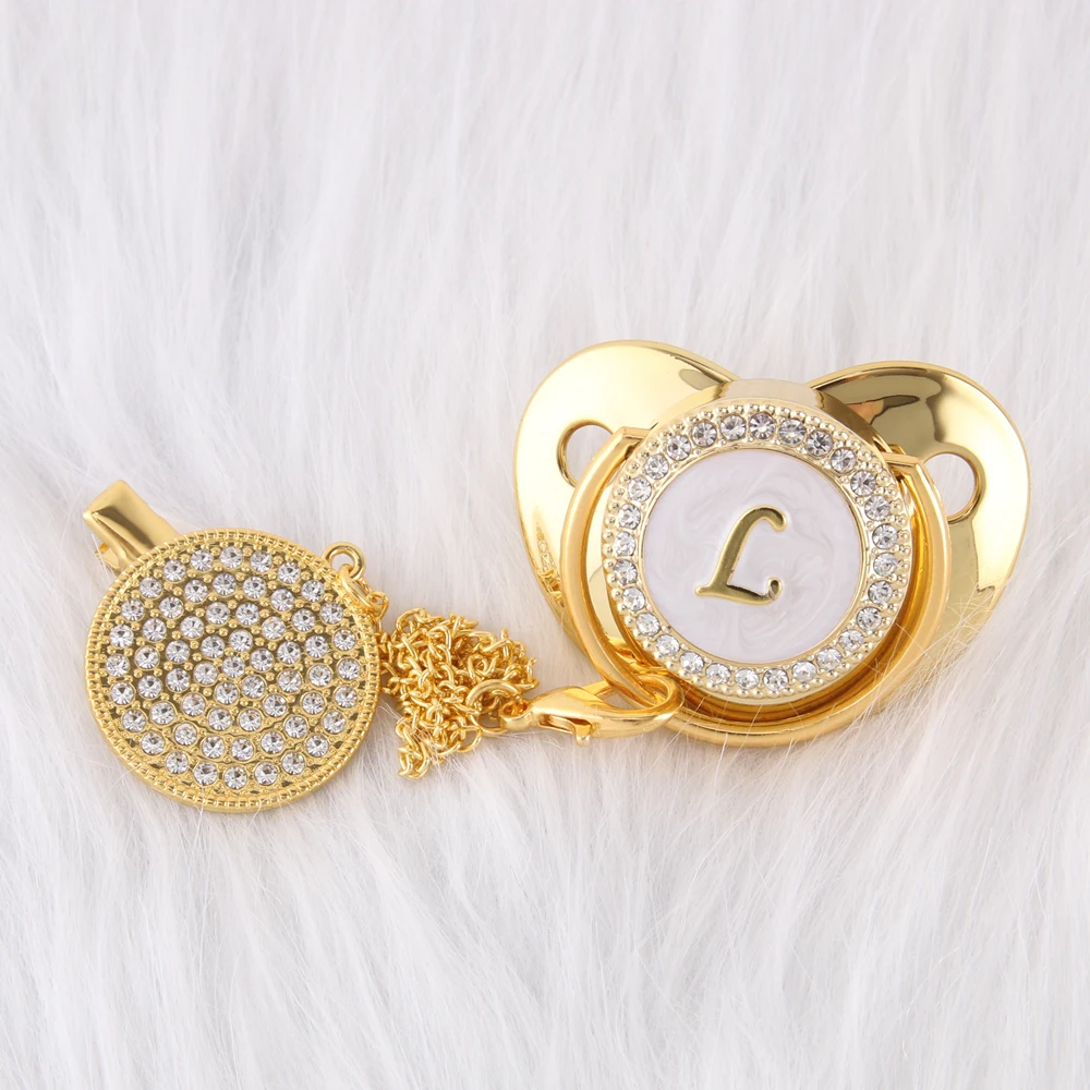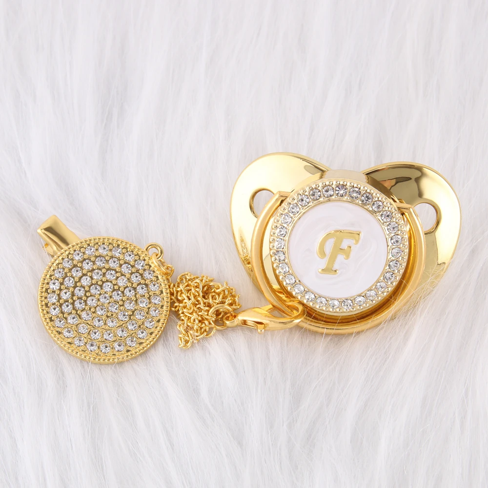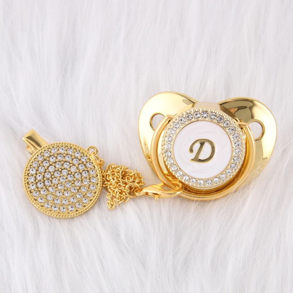 Роскошные золотые 26 инициалов Стразы соски для младенцев с зажимами Chupeta Sucette блестящие детские соски-пустышки для детского душа подарок