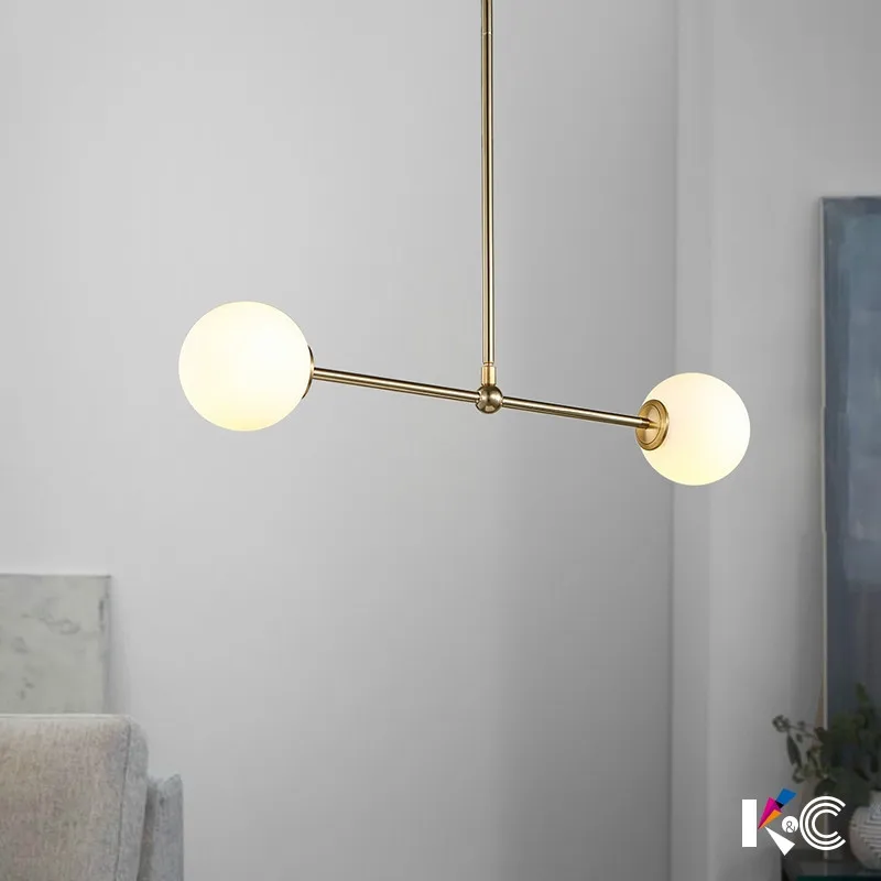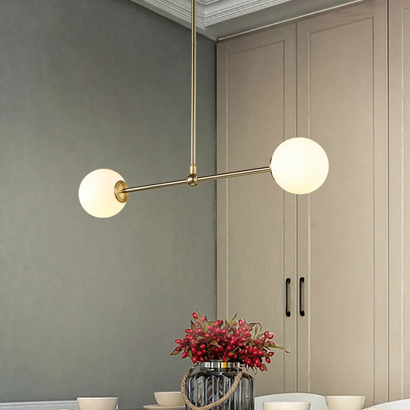 Вращающийся светодиодный подвесной светильник с 2 лампами, G9, металлический стеклянный светильник в виде шара для столовой, подвесной стержень, светильник для обеденного стола