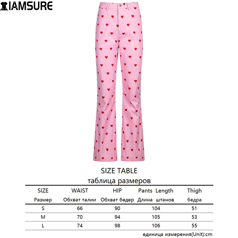Женские розовые брюки IAMSURE с принтом в форме сердца, 2020, милые узкие брюки с высокой талией и широкими штанинами для девушек, праздничные женские брюки в Корейском стиле