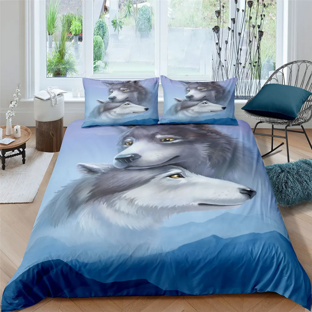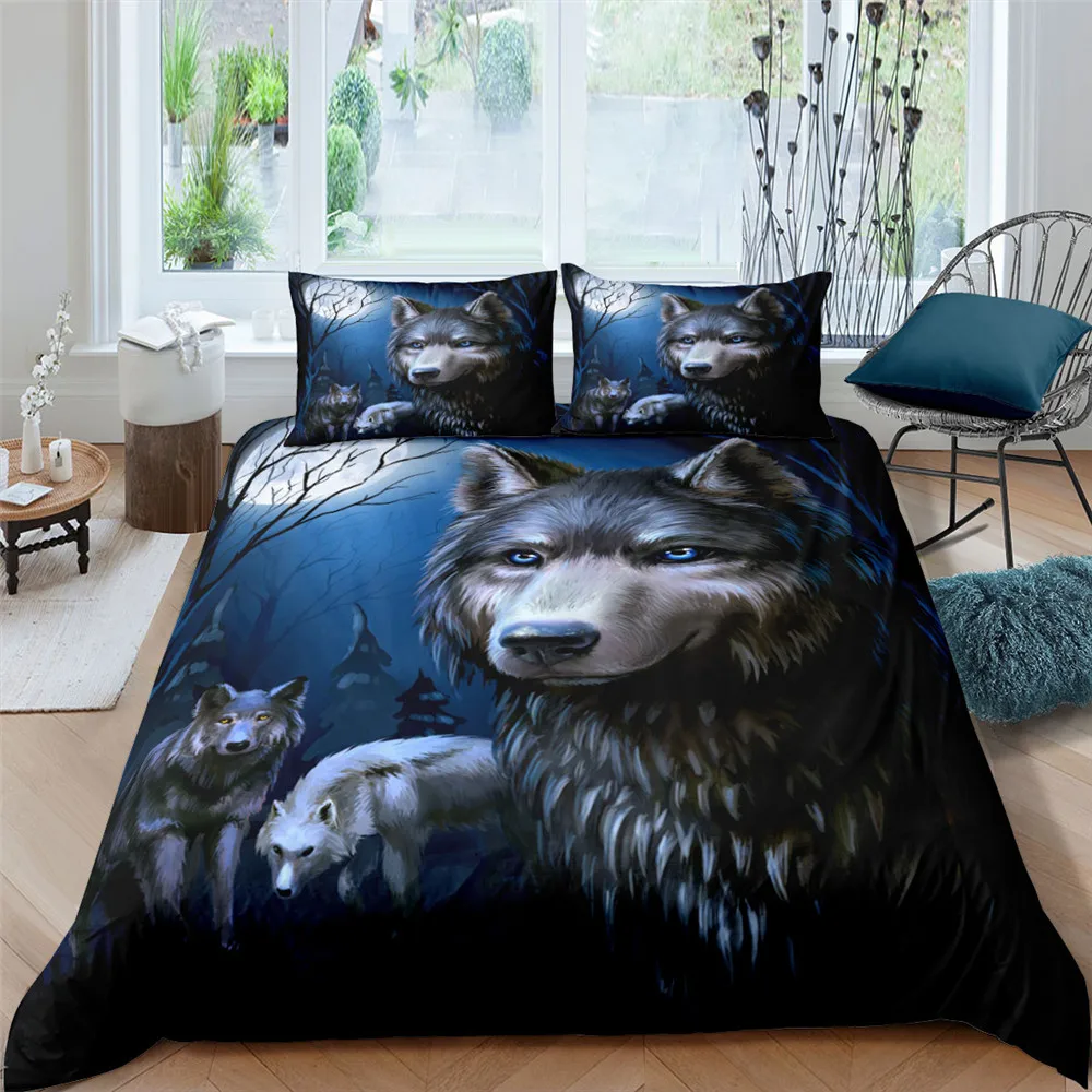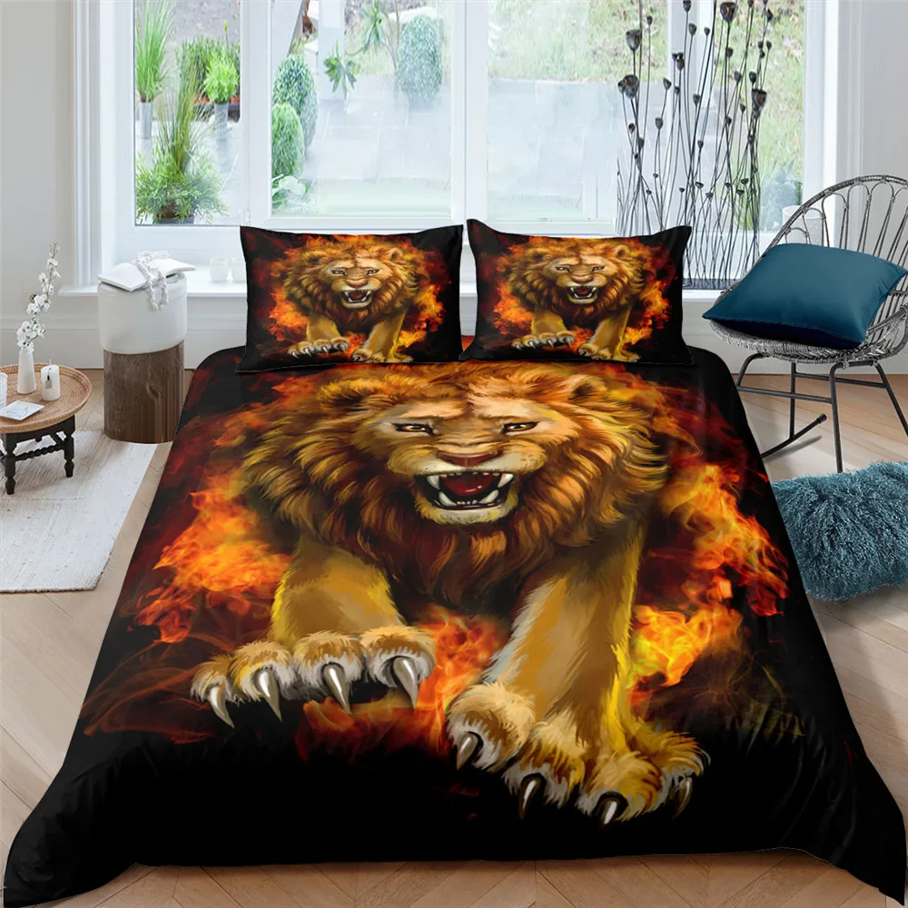 Комплект постельного белья 23 шт., пододеяльник с животными, наволочка, одеяло, тигр, волк, Лев, домашний текстиль