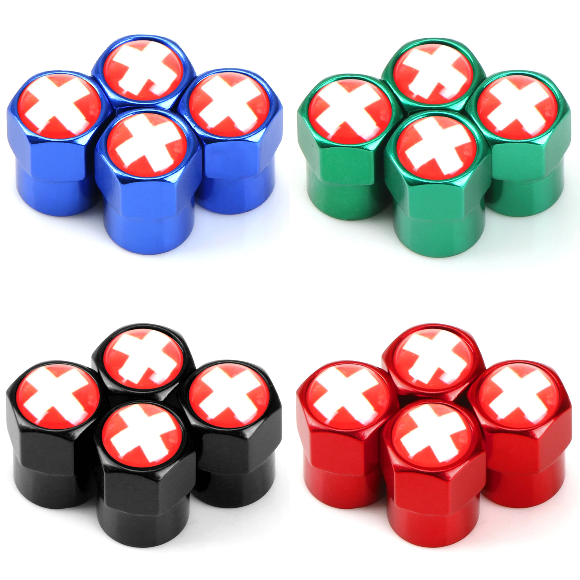 Автомобильный Стайлинг, эмблема национального флага Швейцарии, крышка колеса крышки стержня вентиля шины для Skoda SEAT, Volvo, автомобильные аксессуары, 4 шт.