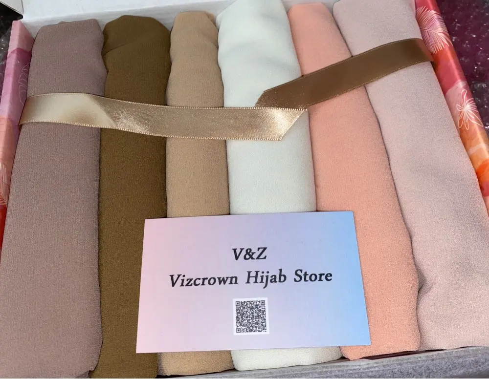 Женская шифоновая шаль, элегантный однотонный шарф, накидка, хиджаб, палантины, индивидуальная Подарочная коробка, мусульманский головной платок