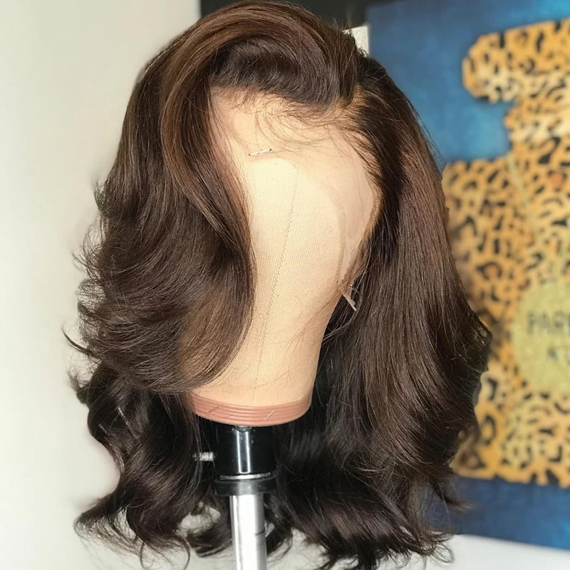 Европейские еврейские человеческие волосы, 100% Еврейские Кошерные Парики, коричневые, полные шнурки, короткие волны, 13 х4, невидимые швейцарские кружева