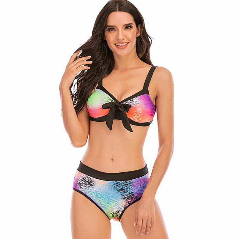 Женское бикини в радужную полоску, неоновое бикини с бантом, размер...