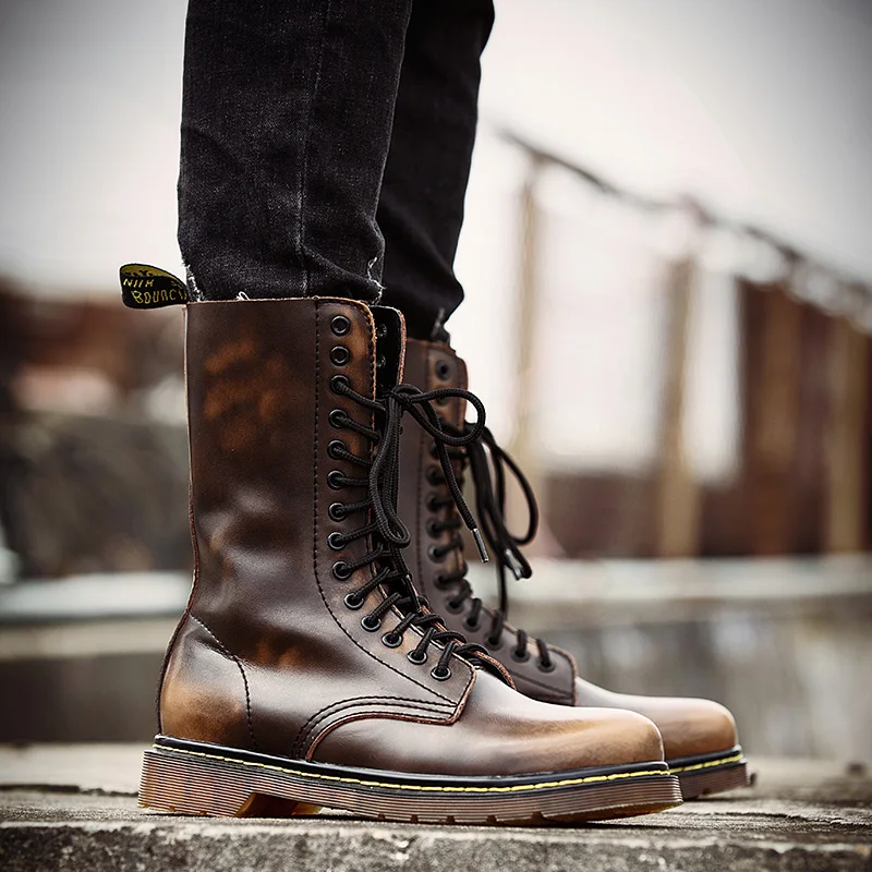 Мужские ботинки в винтажном стиле; Модная рабочая обувь до середины икры в байкерском стиле; Классическая мужская обувь для отдыха; Зимняя повседневная обувь