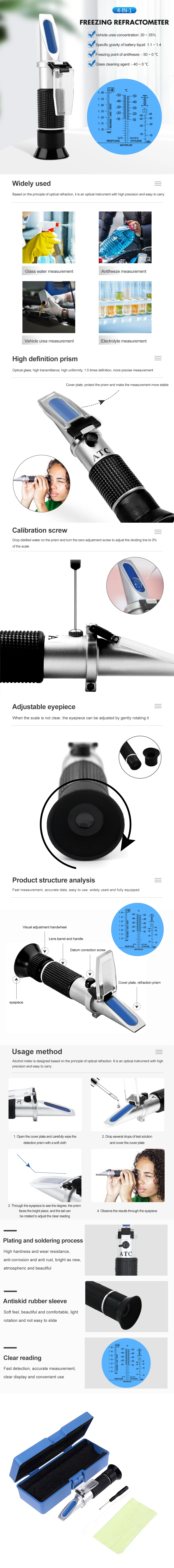 4 в 1 Автомобильная антифриз батарея Жидкость Рефрактометр Мочевина Adblue Стекло Температура замерзания Тестер воды с коробкой