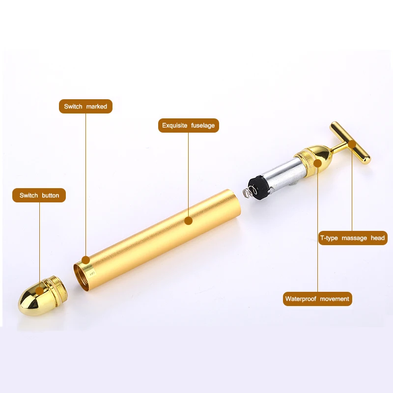 Энергетическая красота бар для похудения лица 24k золото Вибрация лицевой валик для красоты ролик Массажер палка подтяжка кожи морщинка бар уход за кожей