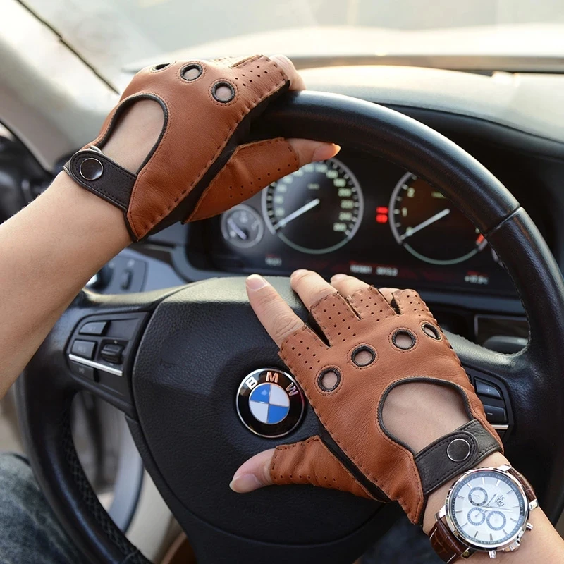 Перчатки мужские без пальцев, кожаные, без подкладки, Нескользящие