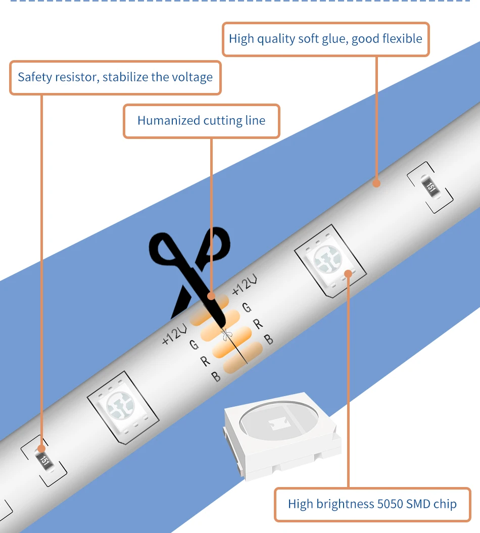 * Светодиодный чип высокой цветопередачи, высококачественный светодиодный чип 5050SMD, высокая цветопередача, низкий светильник, спад, прочный, супер высокая яркость, супер большой чип, супер длительный срок службы.
