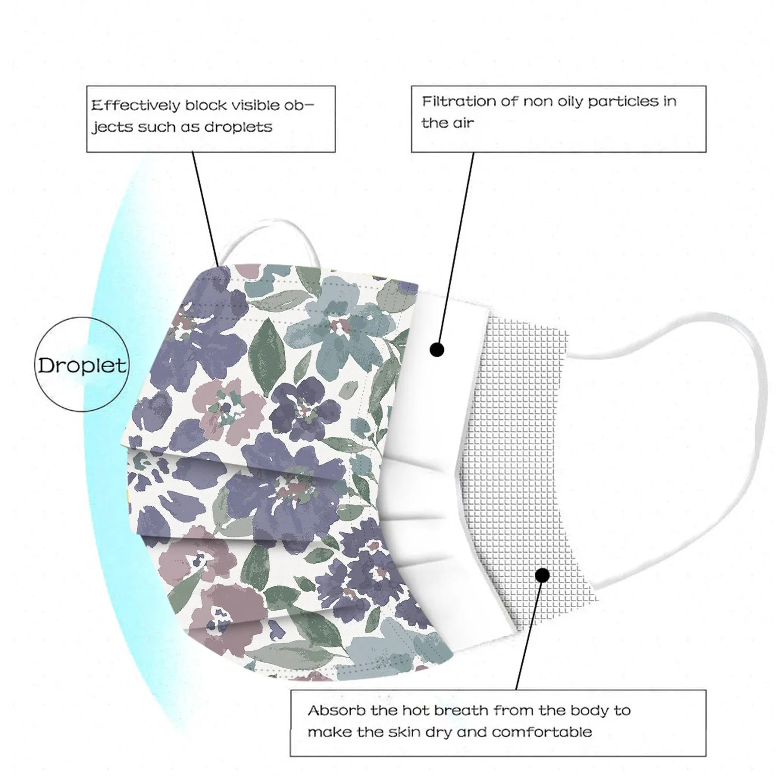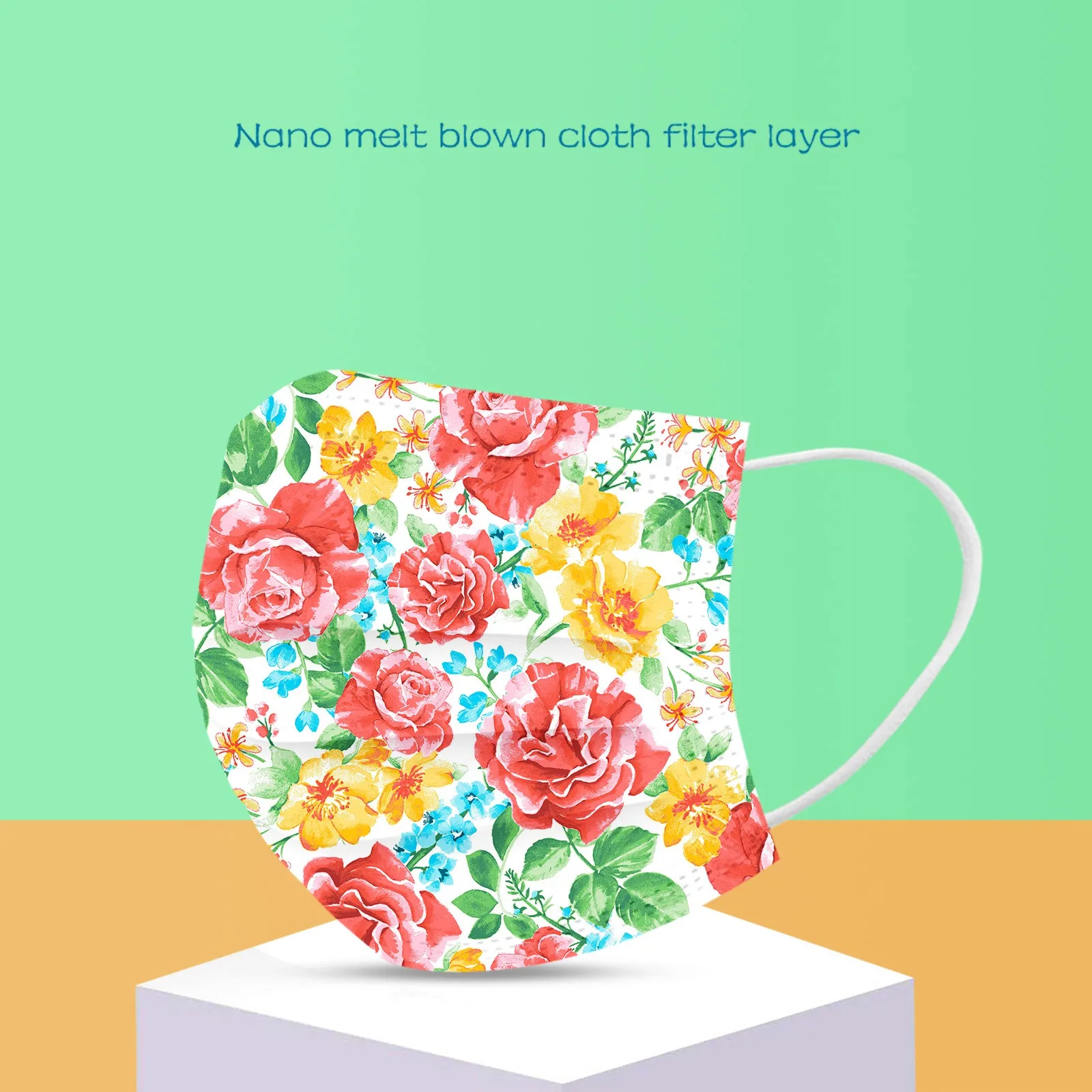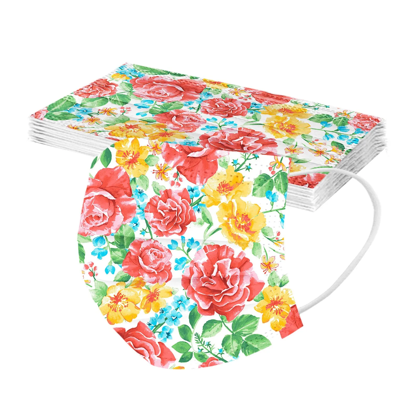 Маска для взрослых с цветочным принтом, одноразовая 3-слойная Нетканая ткань, маска для лица, дышащая, ветрозащитная, закрывающая рот маска, 10 шт.