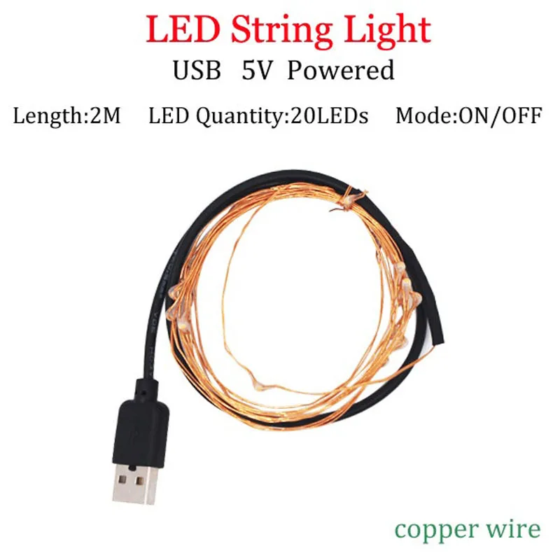 USB светодиодная гирлянда, 2 м, 5 м, 10 м, 100 светодиодный, S, медная проволока, гибкая лампа, освещение для книг, Праздничный Рождественский Декор, строка