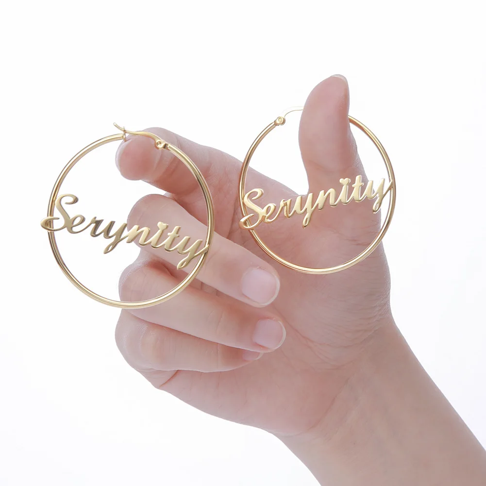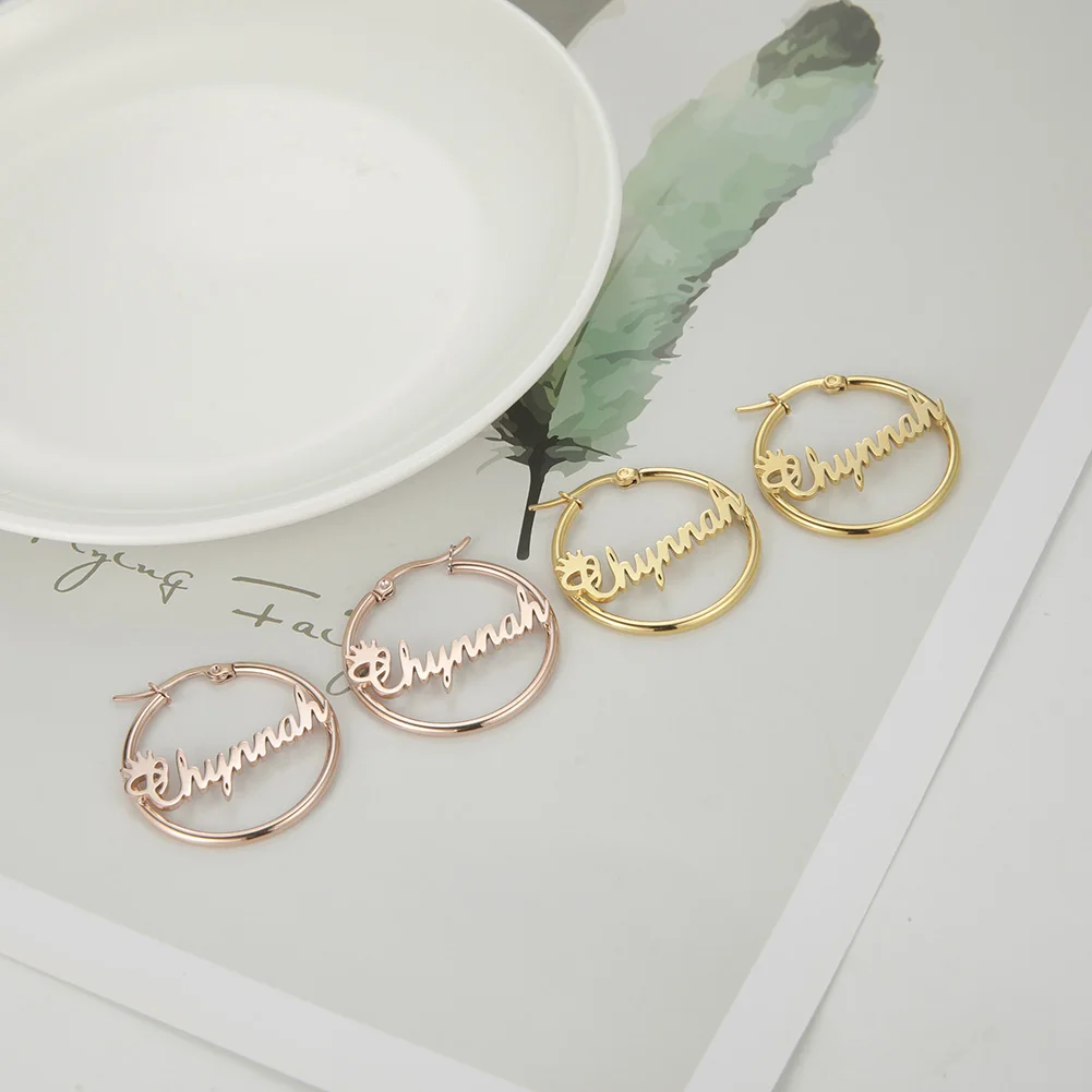 серьги сережки бижутерия для женщин 2021 тренд Lucktune Большие серьги-кольца с именем на заказ, висячие серьги для женщин и девушек, табличка из нержавеющей стали, ювелирные изделия, Новогодний подарок