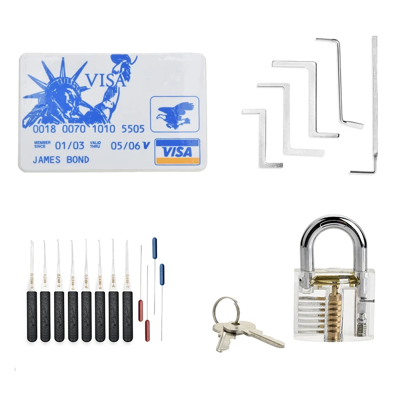 Это высококачественный набор замков. Доставка была быстрой. Этот комплект может быть улучшен компанией, предлагающей дополнительный чехол для набора. Я настоятельно рекомендую этот комплект.