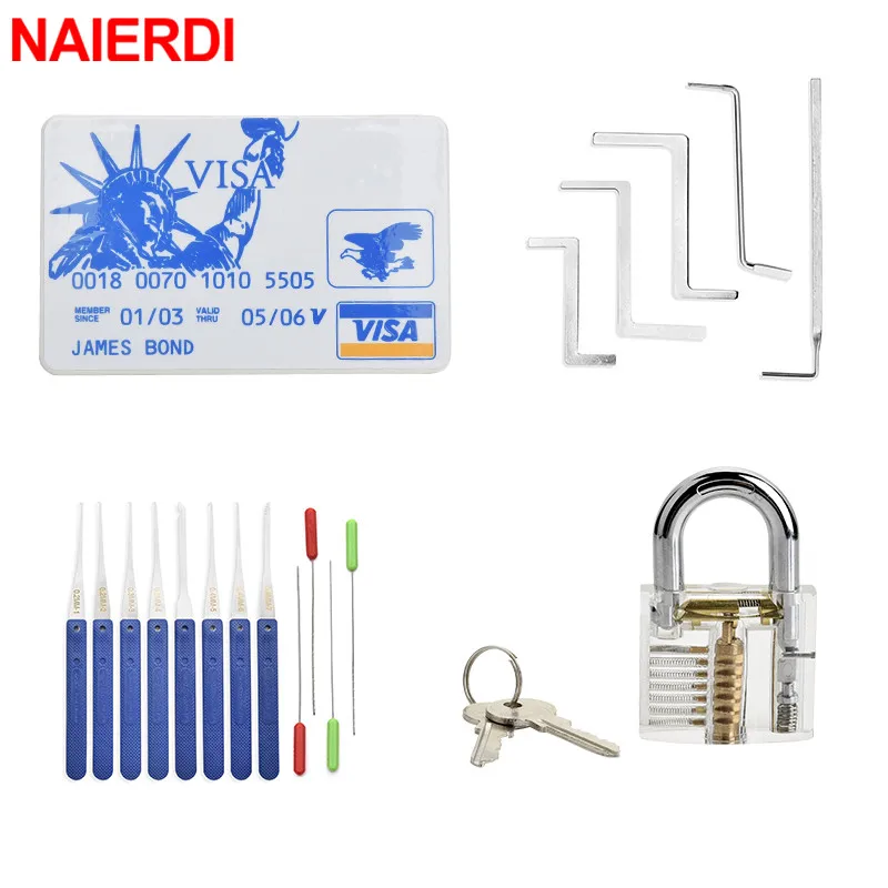 Набор отмычек NAIERDI, слесарные инструменты, экстрактор сломанных ключей с прозрачными замками, учебный Комбинированный Замок для обучения