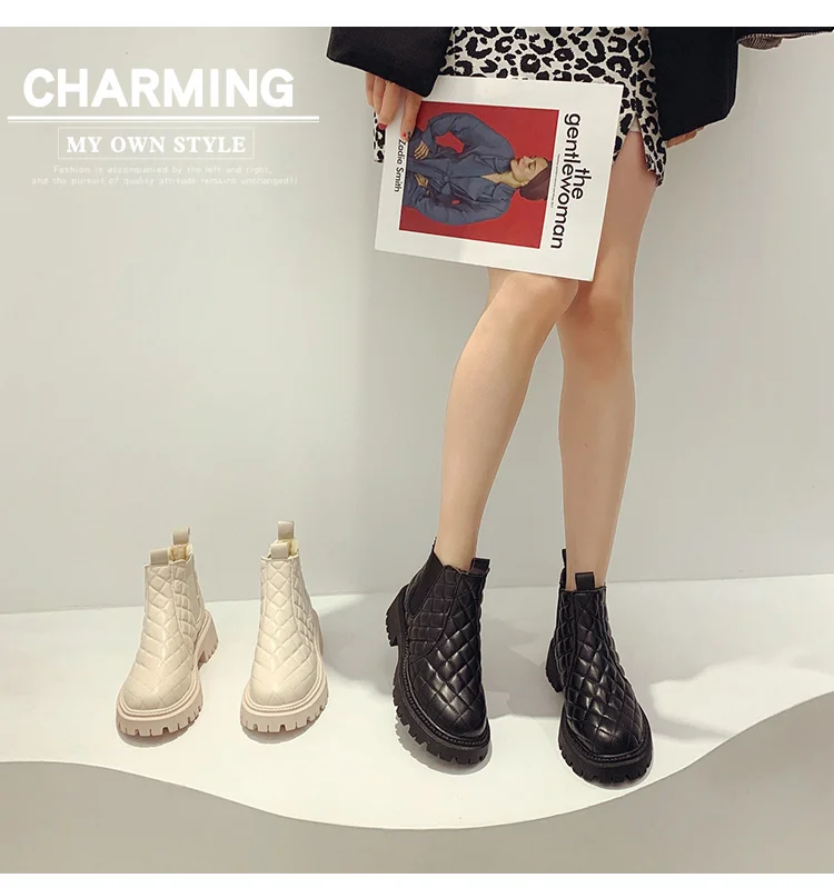 Женские ботинки челси, зимние теплые короткие ботинки на толстом каблуке с нескользящей подошвой, 2021