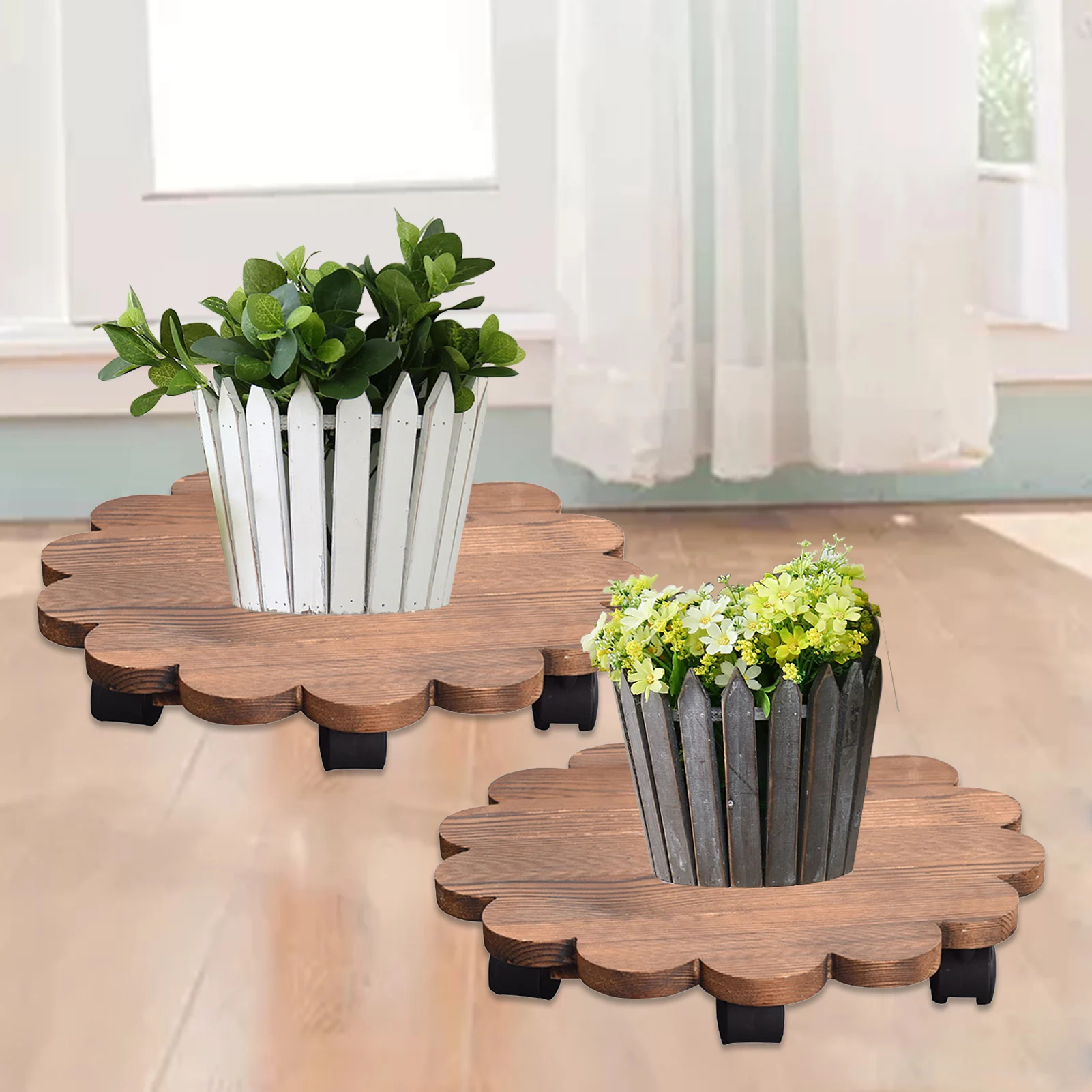 Подвижная деревянная подставка для растений с колесом, круглый держатель для цветочного горшка, легко перемещать поднос для цветочного горшка, подставка для растений, полка