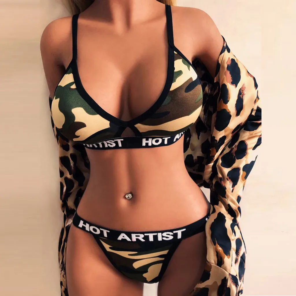 Женское камуфляжное нижнее белье, комплект экзотического нижнего бе...