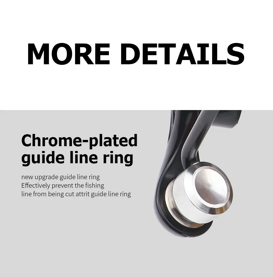 + Металлическая катушка, смелое направляющее кольцо, ручка из сплава, ручка из ЭВА, высокое качество корпуса.
